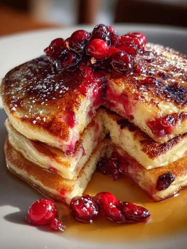 Fluffy pancakes with the bright flavors of cranberry and orange, perfect for a festive breakfast.