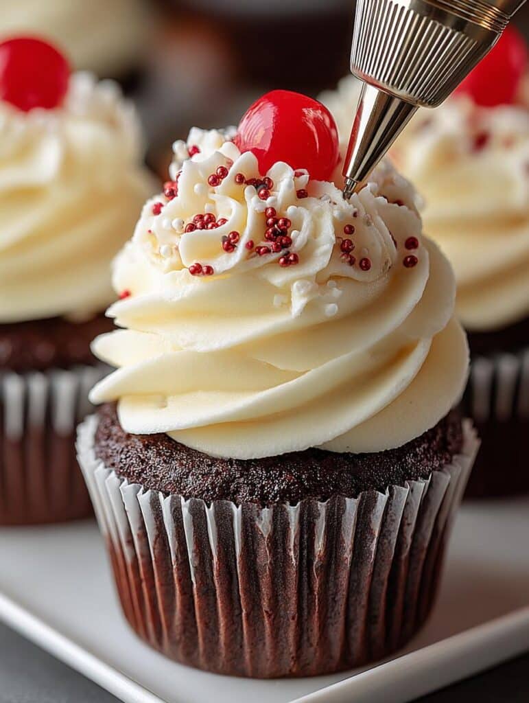 These cupcakes are a showstopper on any dessert table. Pair them with a hot cocoa bar for a cozy winter gathering, or serve them alongside other cheerful holiday cupcakes for a delightful spread. They also make a lovely treat for kids, especially when they’re decorated with fun themes like whimsical snowman cupcakes. For more ideas, check out Banana Split Fruit Pizza.