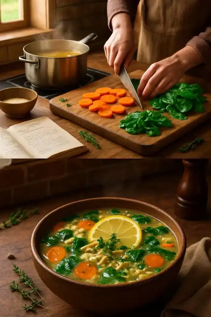 Cook’s Note: I’ve made this soup seven times since last spring, and it’s become our Saturday morning ritual — my kids actually ask for it by name now. The single best tip I can share: squeeze the lemon juice in after you pull the pot off the burner. That one small change transformed the broth from “nice” to “absolutely electric.” Trust the residual heat to wilt the spinach; don’t rush it.