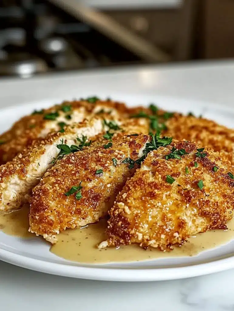 - Bake and Crisp: Arrange the coated chicken breasts on a baking sheet lined with parchment paper. Bake for 20-25 minutes, or until the chicken is cooked through and the topping’s golden brown. When it’s time to flip them halfway through, just remember the old saying: “The more, the merrier”—that goes for crispiness!