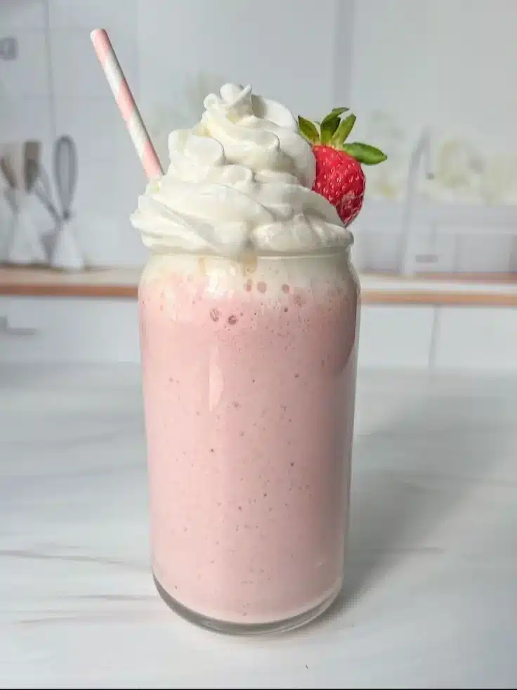 - Kid-Friendly Smaller Portions: Halve the recipe and use 120 ml (1/2 cup) milk, 75 g (1/2 cup) strawberries, 1/2 banana, and 15 g (1/2 scoop) protein powder. Blend for 20–30 seconds.