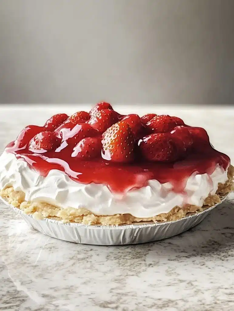 An easy, no-bake dessert featuring a creamy and fruity strawberry filling in a graham cracker crust, perfect for busy days.