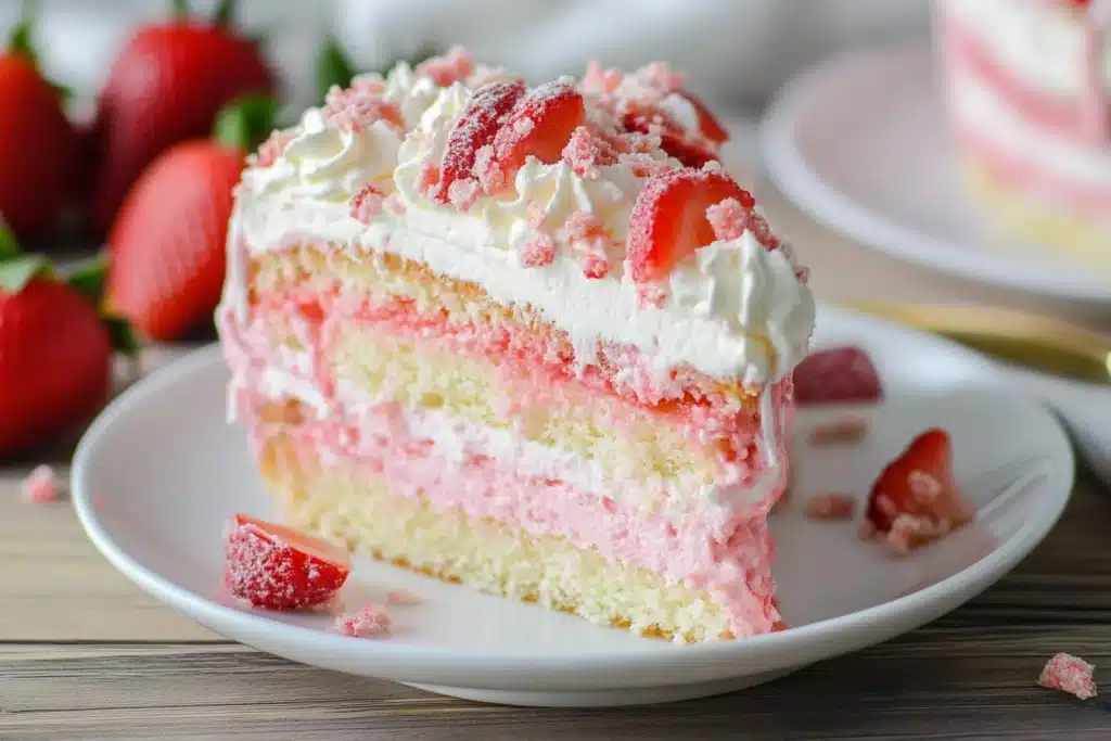 A delightful treat combining creamy cheesecake, fruity strawberry flavor, and a crunchy topping, perfect for gatherings.