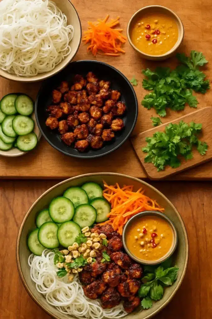 Creating the perfect Thai Peanut Chicken Noodle Bowls is all about using the right ingredients. Below is a complete ingredient list, organized by category, along with smart substitutions to suit various dietary preferences.